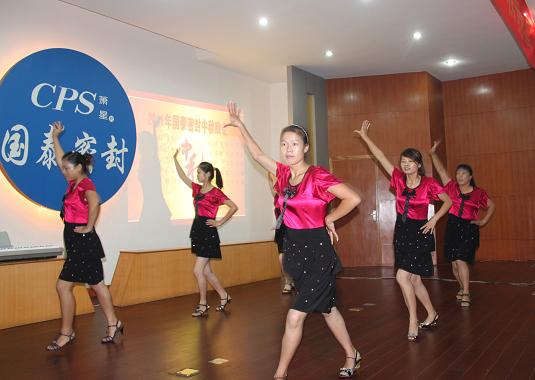 員工在文藝晚會上載歌載舞