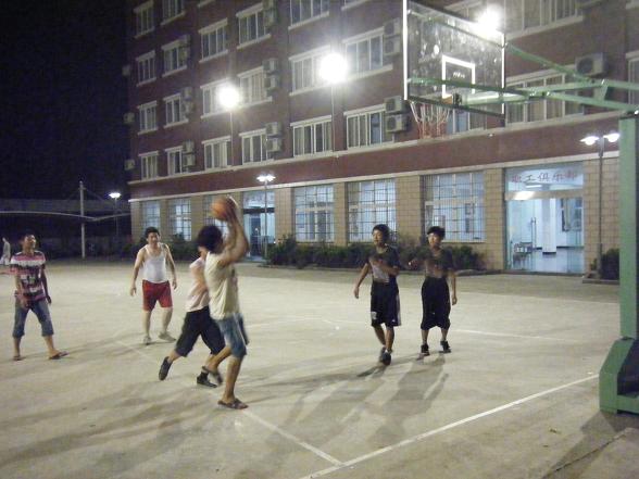 愛好體育的員工晚上沒事可到燈光球場比拼一下