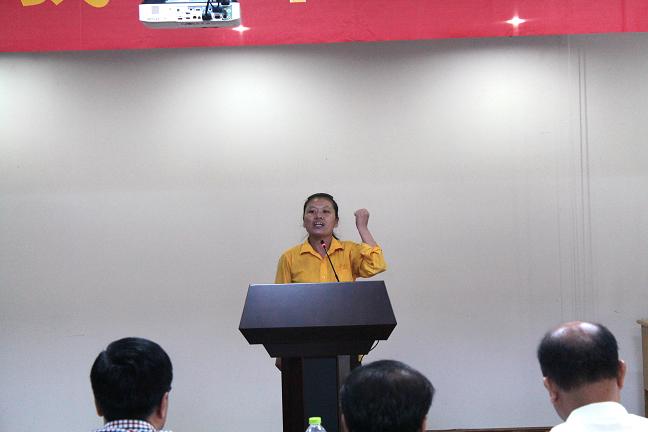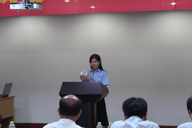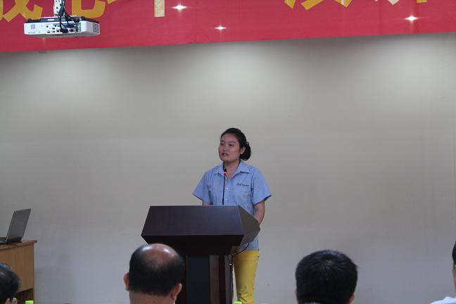 隨后登臺的材料倉庫陳素娟以當下流行的蘋果手機為例,說明質量是“隨著時間、地點、使用對象的不同而不同,隨著社會的發展、技術的進步而不斷更新和豐富”,不但要“質量在我心中”,更要“質量從我做起”,“體現自身的價值,實現百年國泰的夢想”;