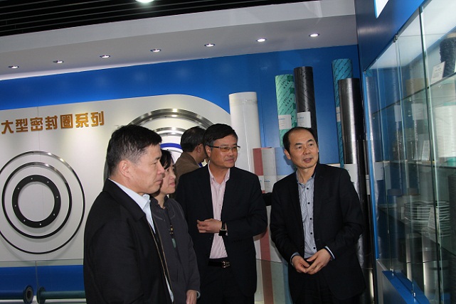 (國泰密封公司領導陪同專委會秘書處領導參觀產品陳列廳)